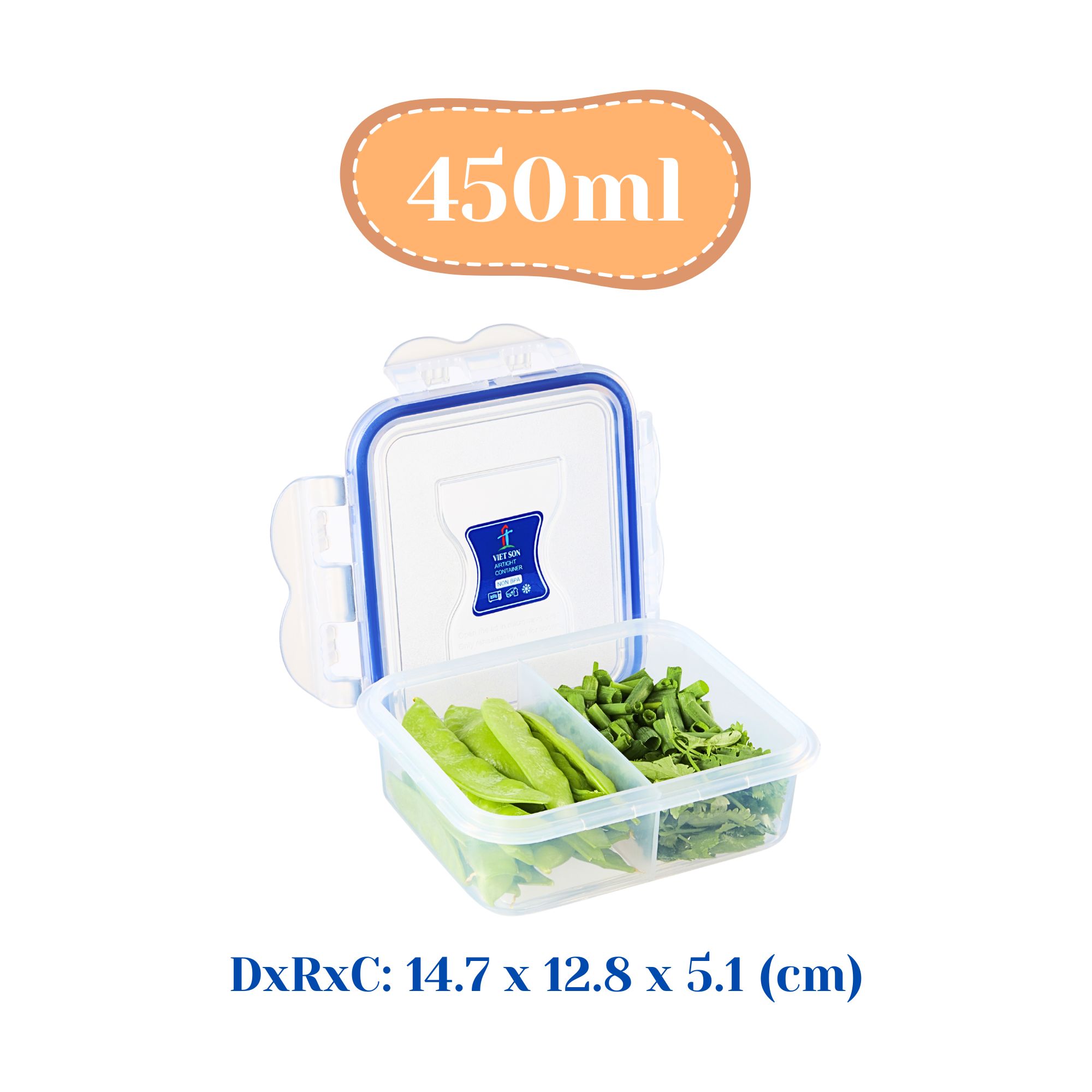 * Tên sản phẩm: Bộ 3 Hộp Đựng Thực Phẩm Có Vách Ngăn Việt Son 450ml Nắp Khóa 4 Cạnh Kín Hơi